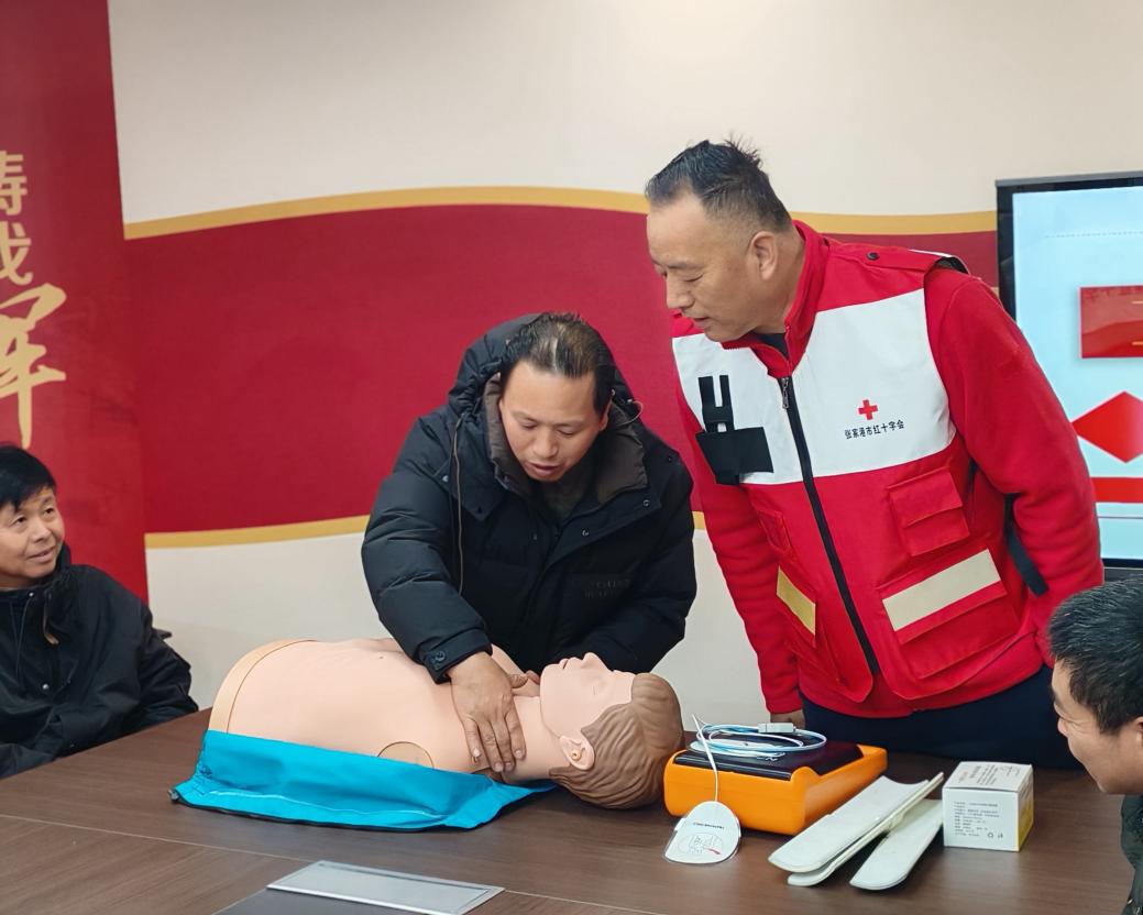 活动伊始,市红十字会志愿者围绕创伤止血、骨折固定、AED规范使用等核心技能,结合志愿服务常见场景开展教学,通过理论讲解、动作示范、手把手实操指导等,让志愿者们切实掌握急救本领,为后续开展志愿服务筑牢坚实的安全防线。